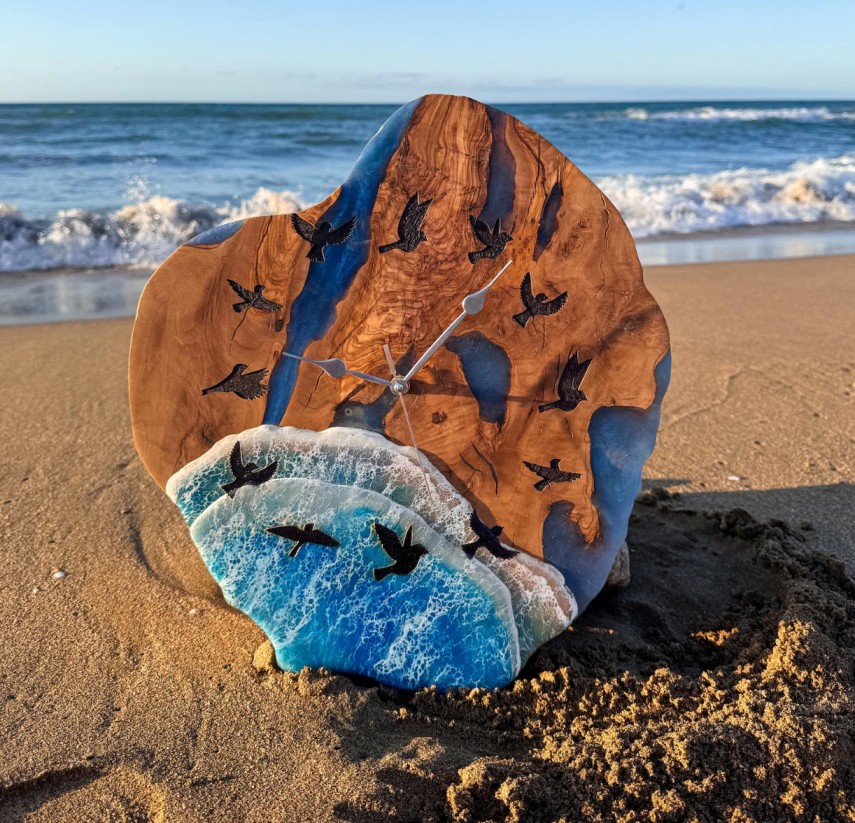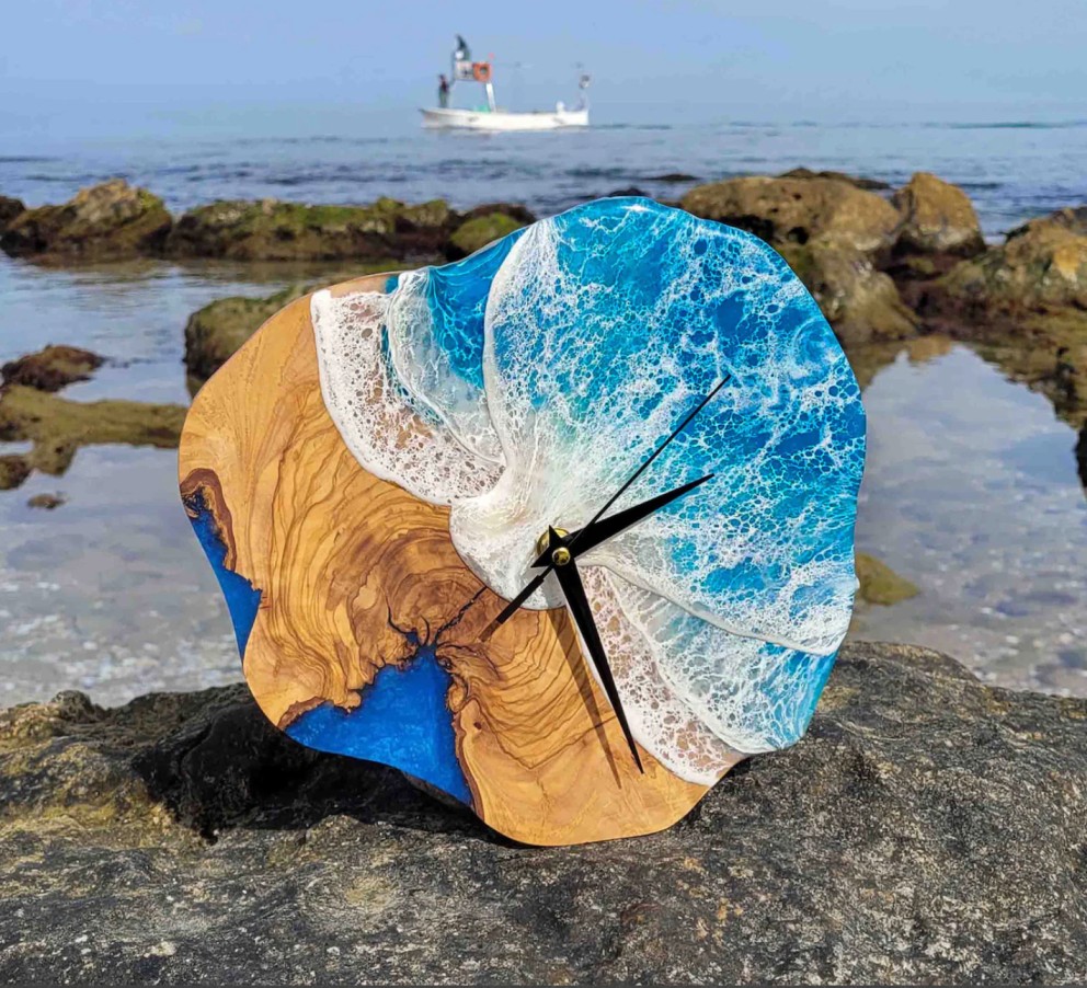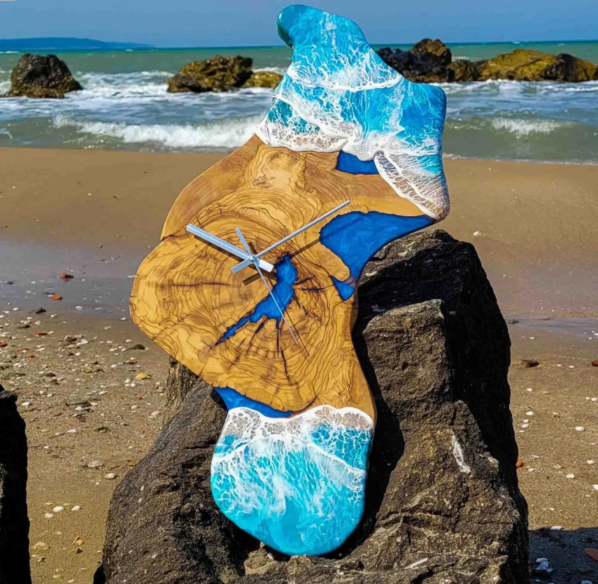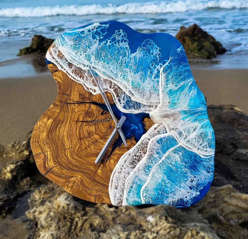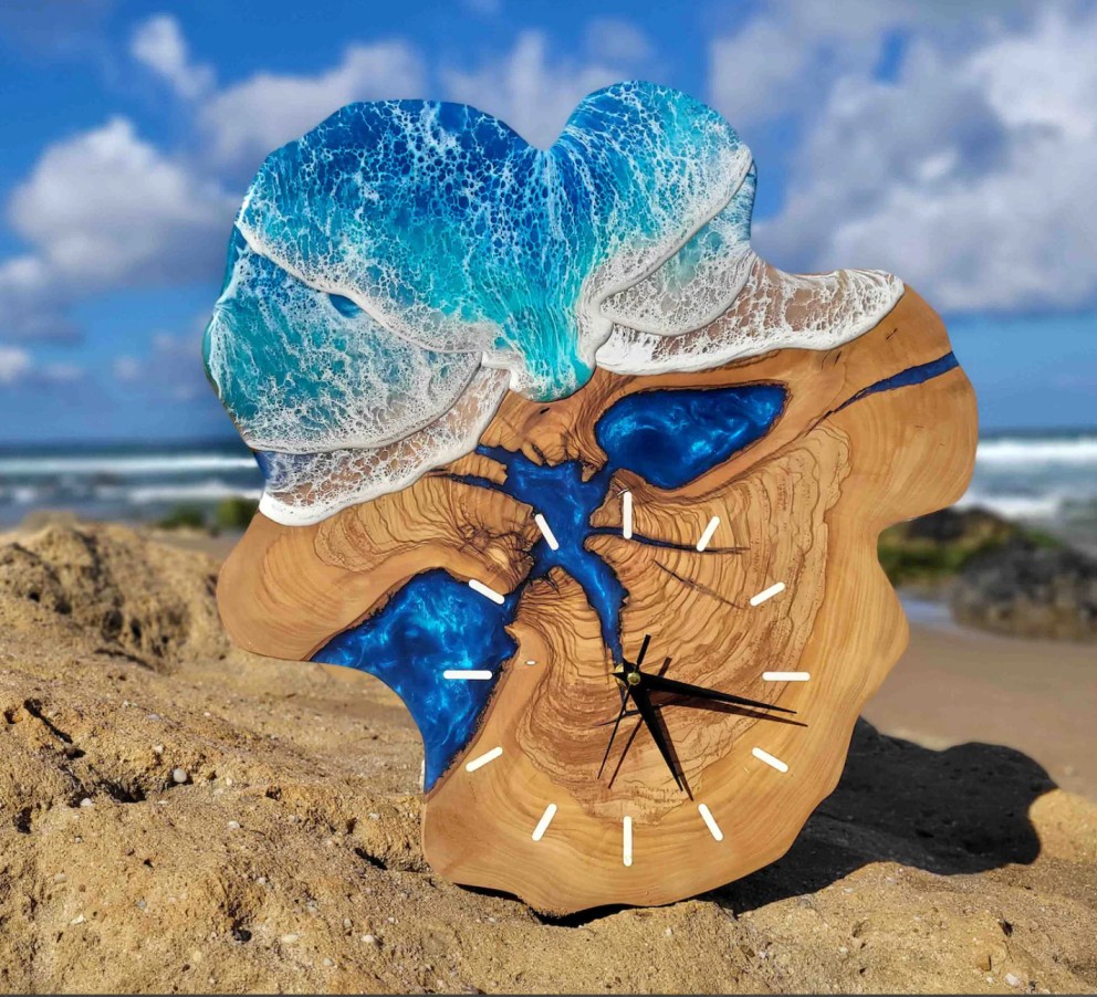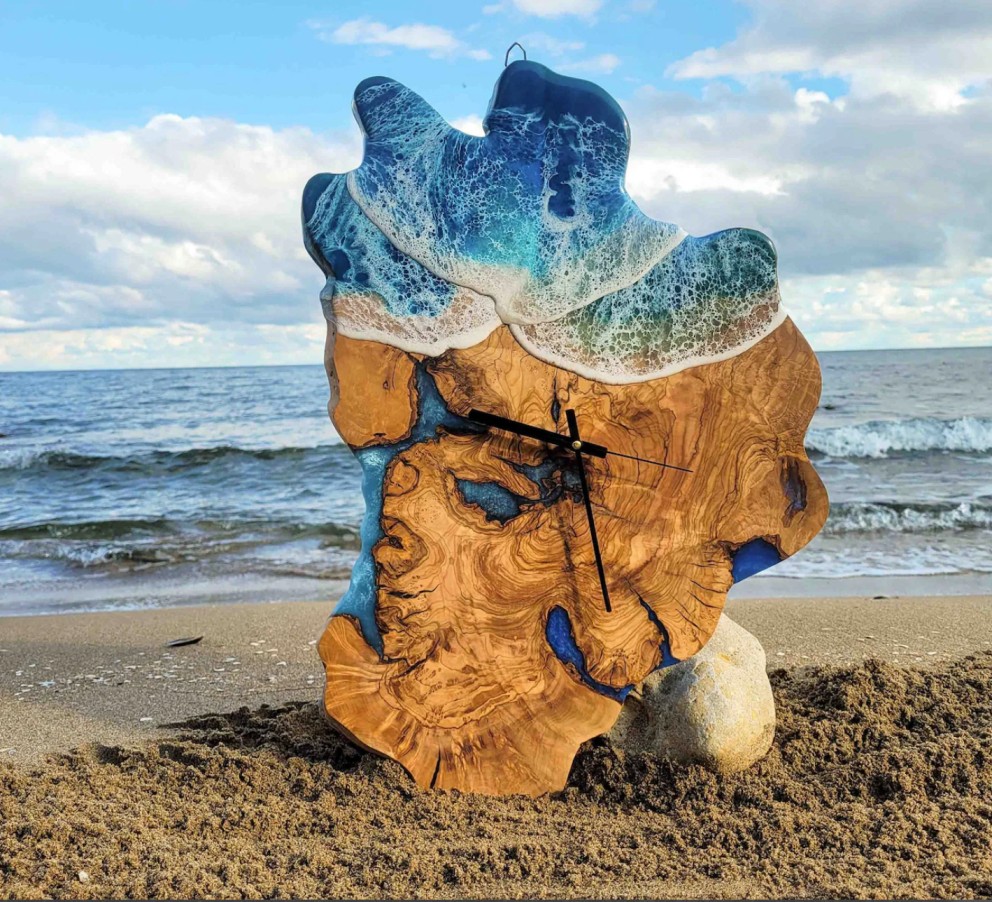 Made to order Epoxy and Wooden Wall Clock. Live edge rustic wood and epoxy resin wall clock.