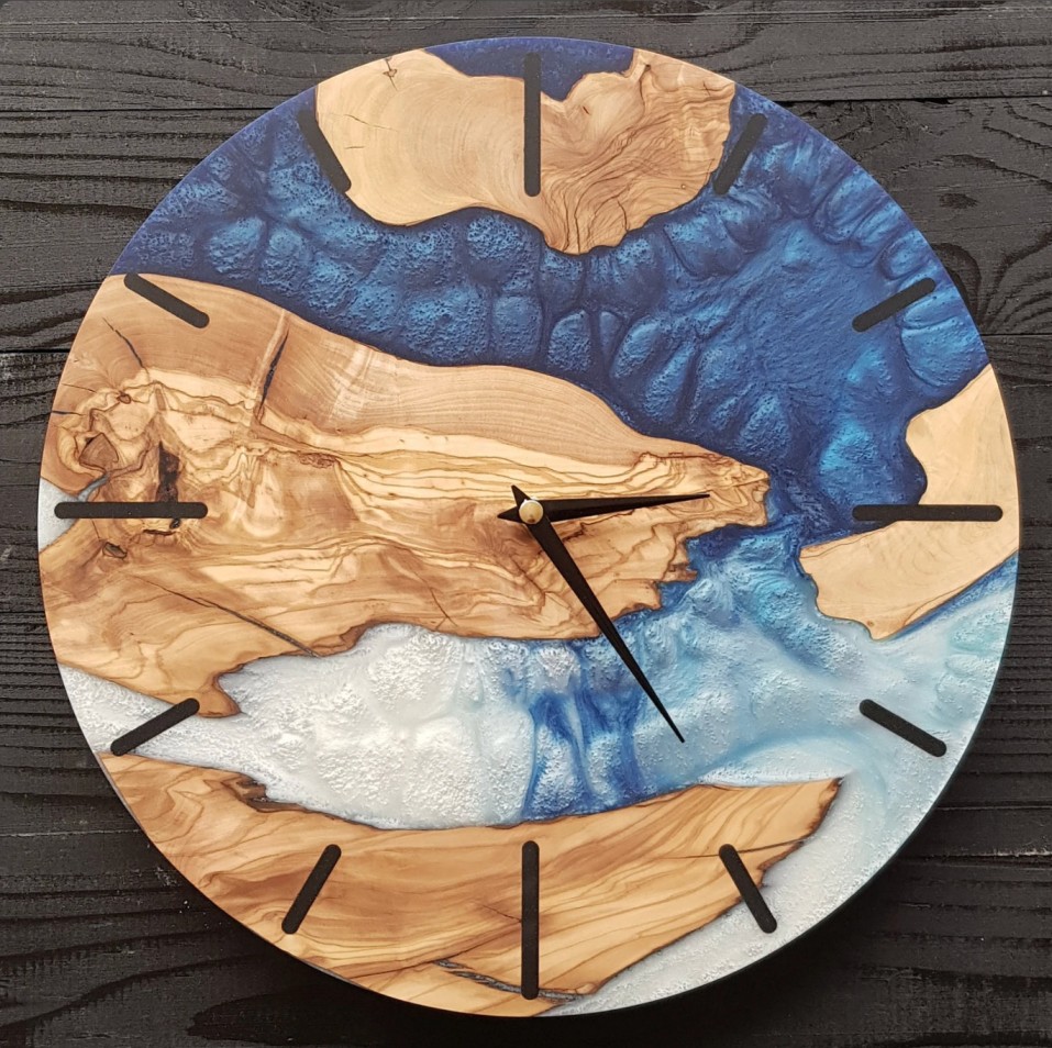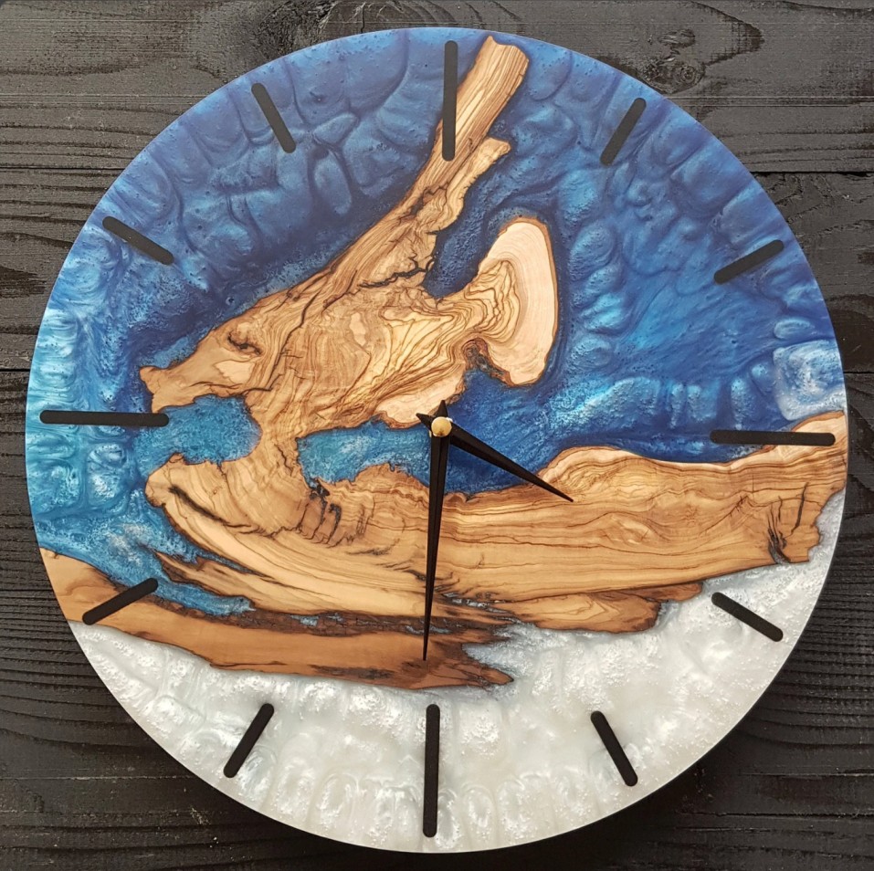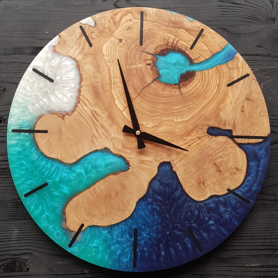 Made to order Epoxy and Wooden Wall Clock. Live edge rustic wood and epoxy resin wall clock.